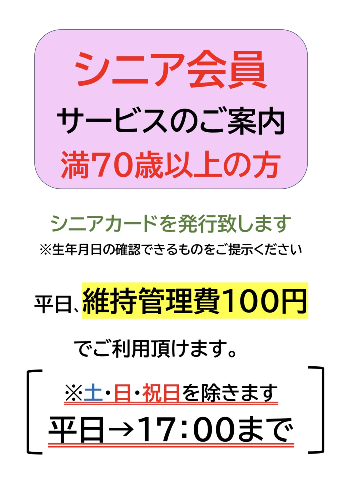 価格改正により、11月2日(木)から平日の維持管理費100円とさせて頂きます。